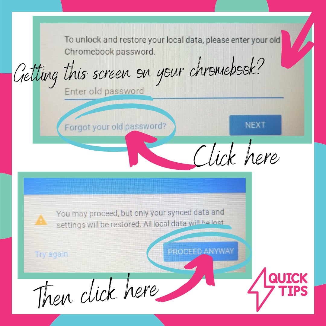 Sep 10, 2018 · chrome thinks it's being helpful by asking for the old password to sync any data that may have been stored locally on the device. Now i lost all of my local data! After repeated attempts it asked me to verify by entering an old password, which i did. Nothing is on my chromebook only a few bookmarks which i deleted before are still here. I understand why this is happening.